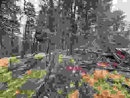 Fire - Medium Risk - About 14 days in 2050 will have significant risk for fire spread, compared to 7 around 1990. Over 90% of buildings in this area have significant chance of wildfire.